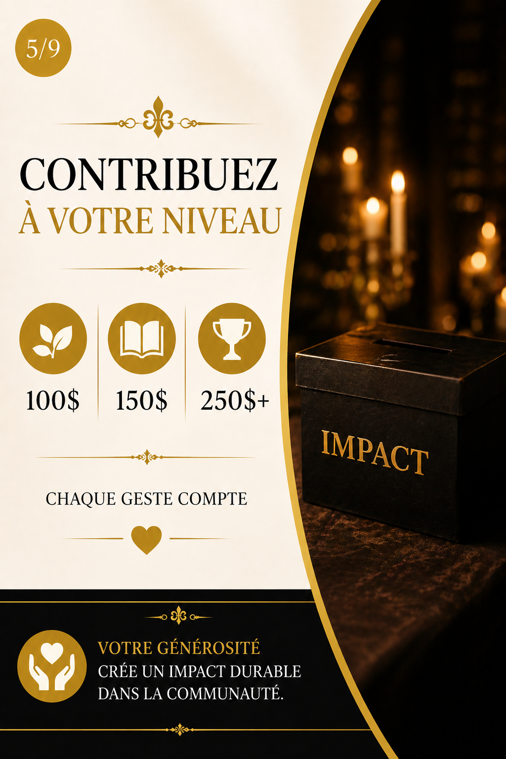 Contreparties : Mention du commanditaire sur les réseaux sociaux (1 publication) Nom affiché dans la liste officielle des contributeurs Remerciement public lors de l'événement Accès à 1 billet standard pour le dîner Certificat de reconnaissance numérique